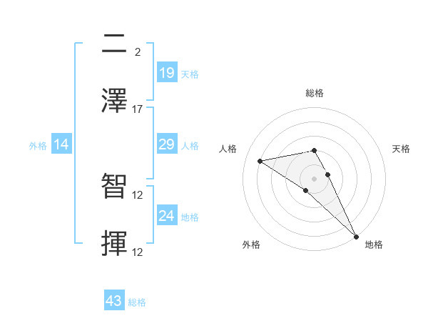 二澤 智揮さんを姓名の画数から五運を鑑定