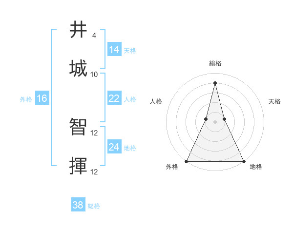 井城 智揮さんの総格は38画の4点!