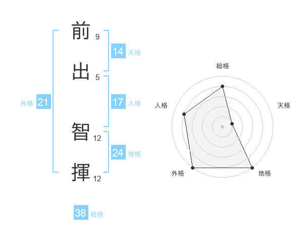 前出 智揮さんの総格は38画の4点!
