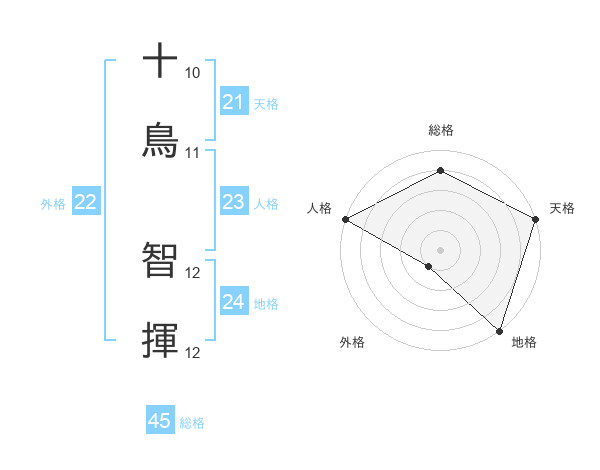 十鳥 智揮さんを姓名の画数から五運を鑑定