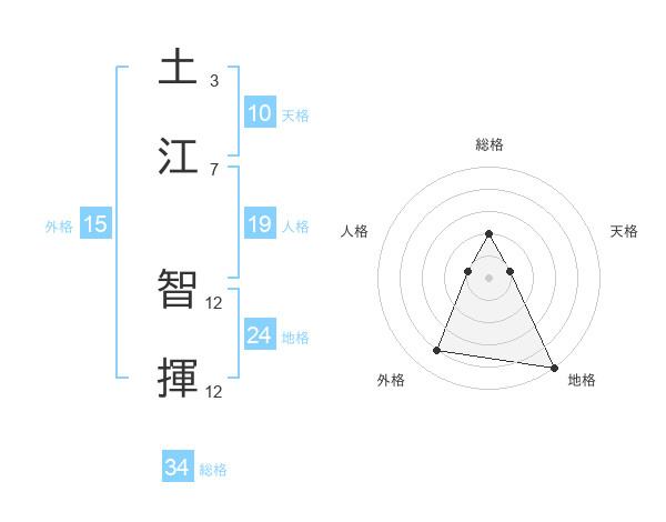 土江 智揮さんの総格は34画の2点!