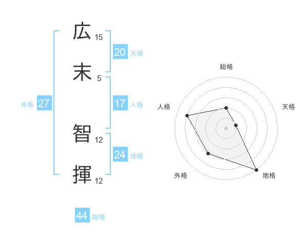 広末 智揮さんの総格は44画の2点!