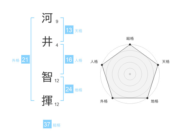河井 智揮さんの総格は37画の5点!