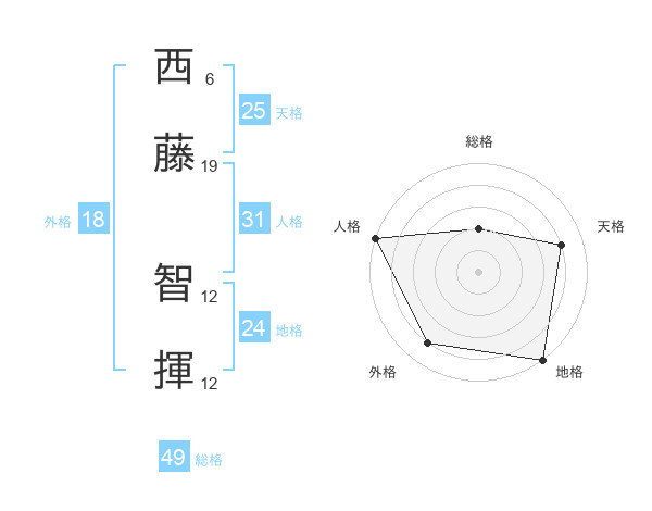 西藤 智揮さんの人格は31画の5点!