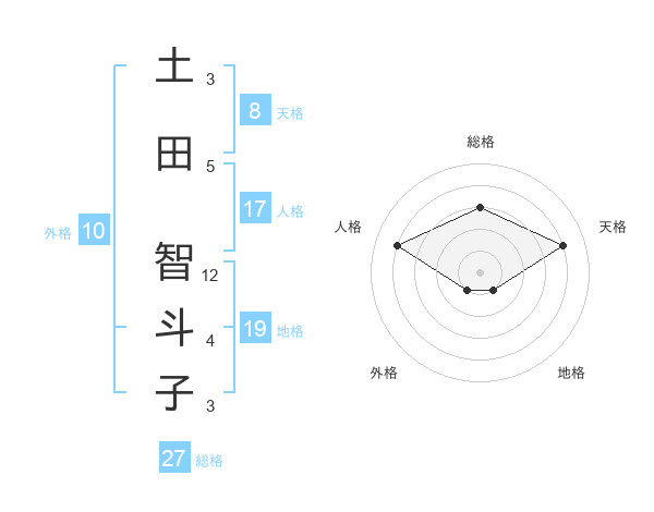 土田 智斗子さんを姓名の画数から五運を鑑定
