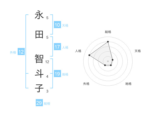 永田 智斗子さんを姓名の画数から五運を鑑定