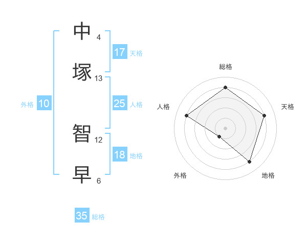 中塚 智早さんの総格は35画の4点!