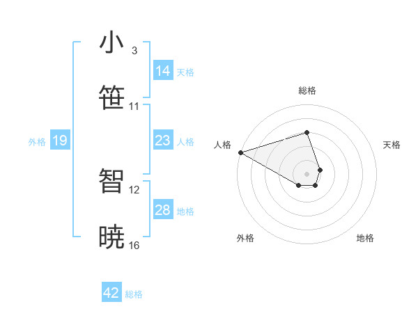 小笹 智暁さんの天格は14画の1点!