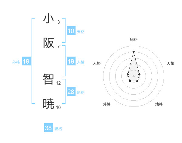 小阪 智暁さんの総格は38画の4点!