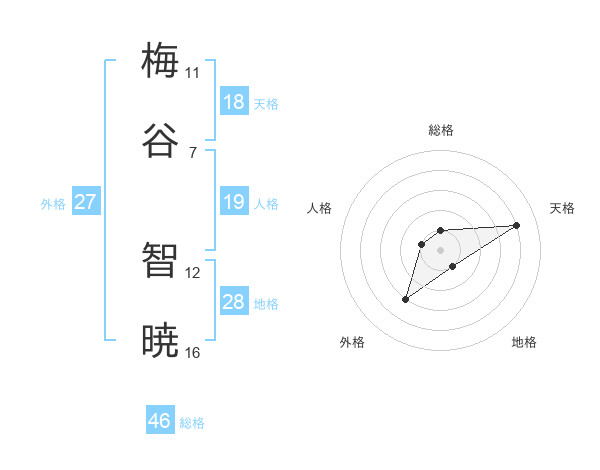 梅谷 智暁さんを姓名の画数から五運を鑑定