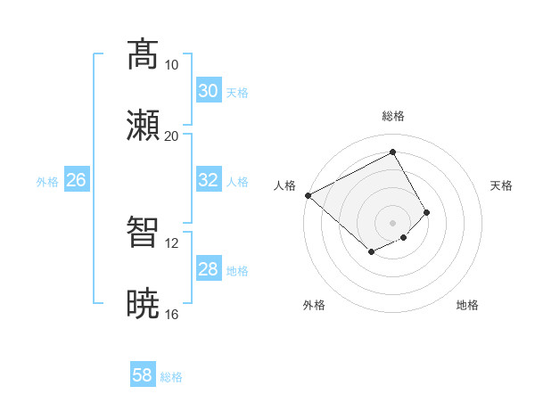 髙瀬 智暁さんの総格は58画の4点!