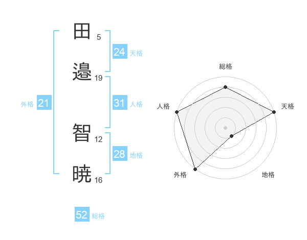 田邉 智暁さんを姓名の画数から五運を鑑定