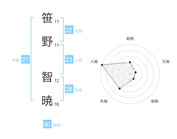 笹野 智暁さんを姓名の画数から五運を鑑定