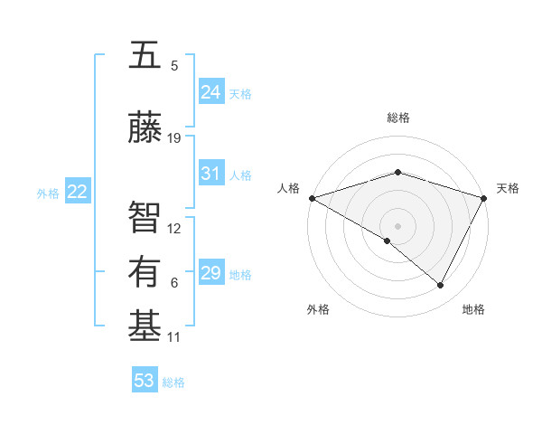 五藤 智有基さんを姓名の画数から五運を鑑定