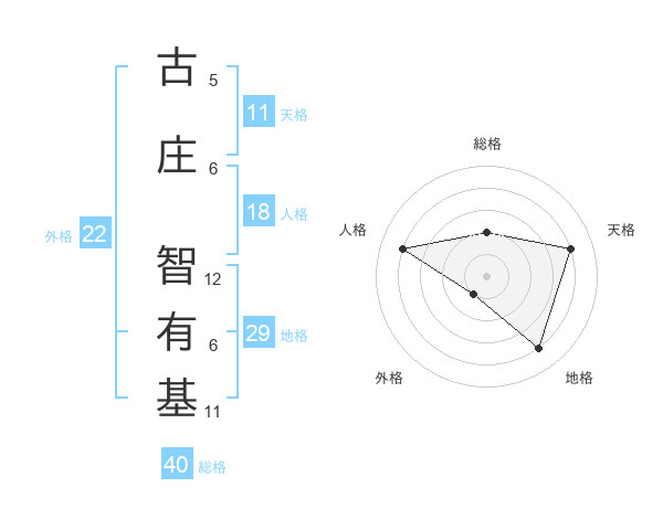 古庄 智有基さんの外格は22画の1点!
