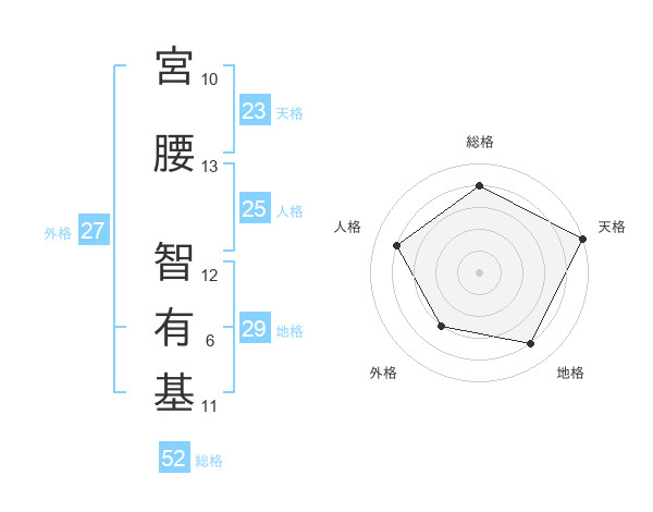 宮腰 智有基さんを姓名の画数から五運を鑑定