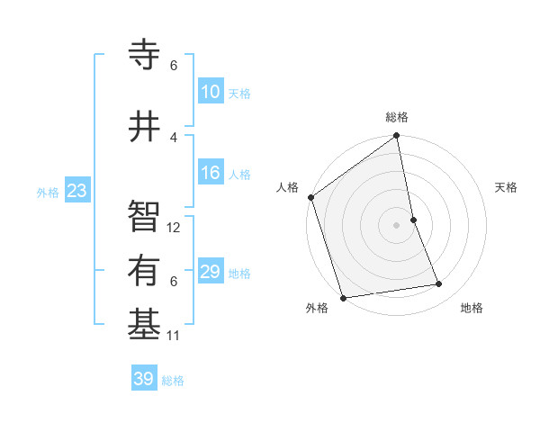 寺井 智有基さんを姓名の画数から五運を鑑定