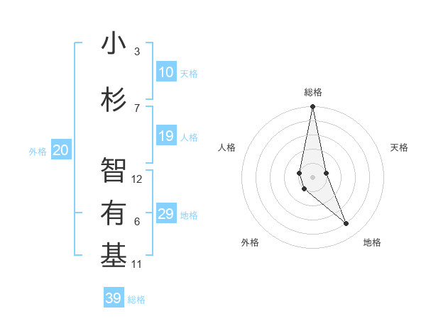 小杉 智有基さんを姓名の画数から五運を鑑定