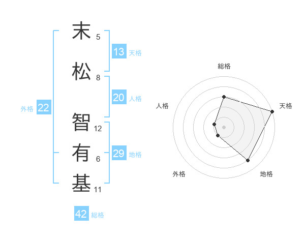 末松 智有基さんの天格は13画の5点!