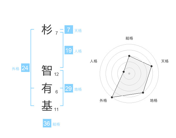 杉 智有基さんの外格は24画の5点!