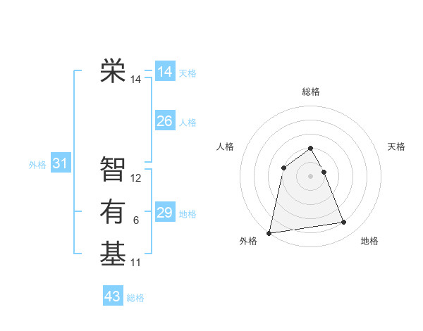 栄 智有基さんの外格は31画の5点!