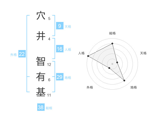 穴井 智有基さんを姓名の画数から五運を鑑定