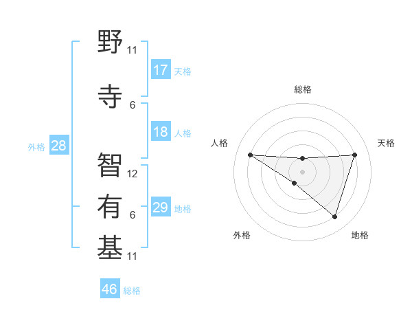 野寺 智有基さんを姓名の画数から五運を鑑定