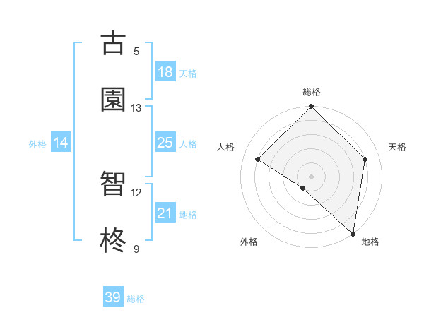 古園 智柊さんの総格は39画の5点!