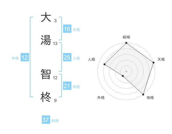 大湯 智柊さんを姓名の画数から五運を鑑定