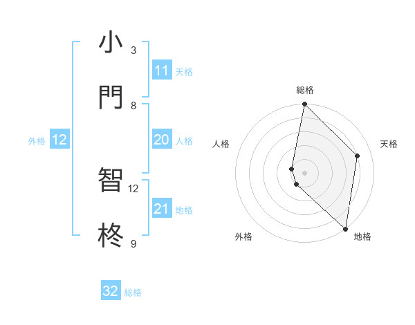 小門 智柊さんの総格は32画の5点!