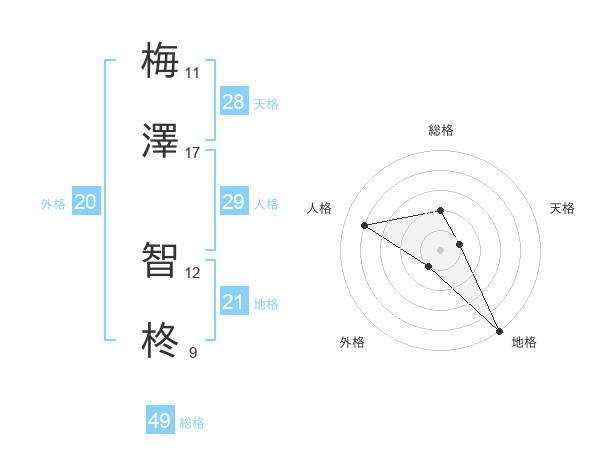 梅澤 智柊さんの総格は49画の2点!