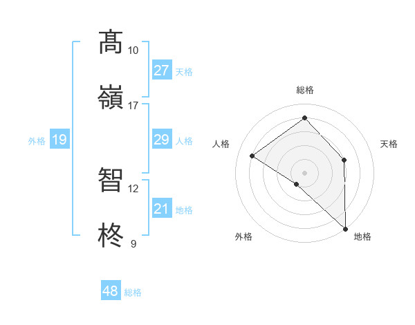髙嶺 智柊さんを姓名の画数から五運を鑑定