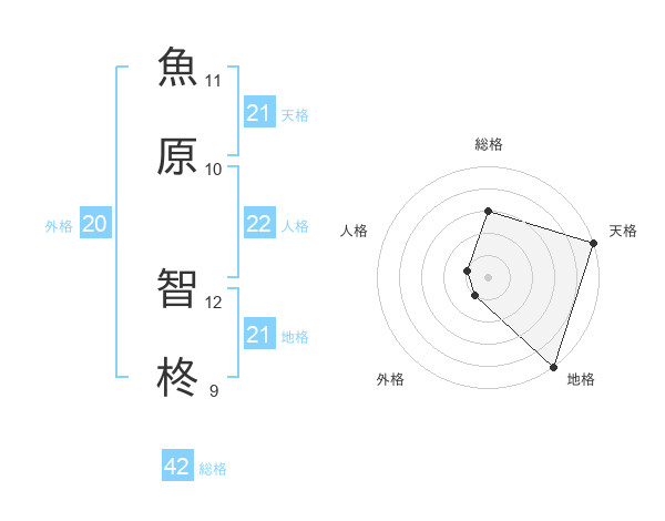 魚原 智柊さんの地格は21画の5点!