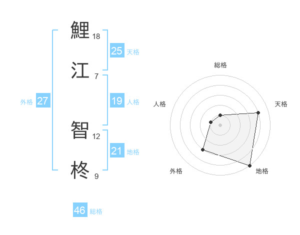 鯉江 智柊さんの総格は46画の1点!