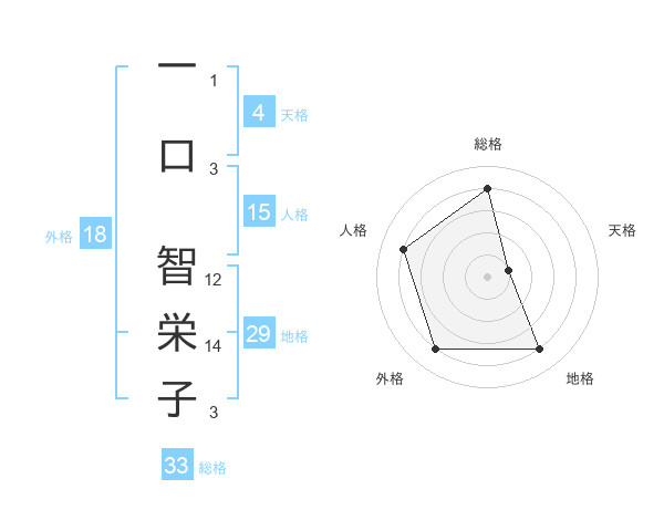 一口 智栄子さんの総格は33画の4点!
