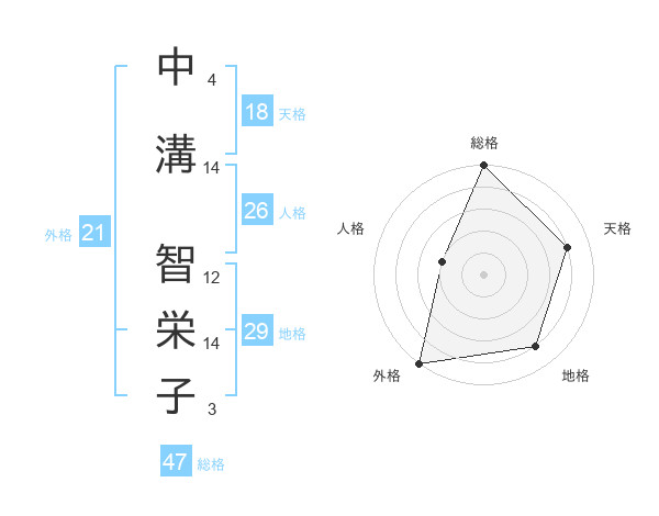 中溝 智栄子さんの総格は47画の5点!