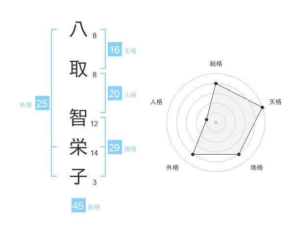 八取 智栄子さんを姓名の画数から五運を鑑定