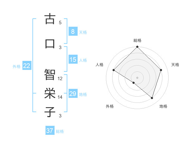 古口 智栄子さんの総格は37画の5点!