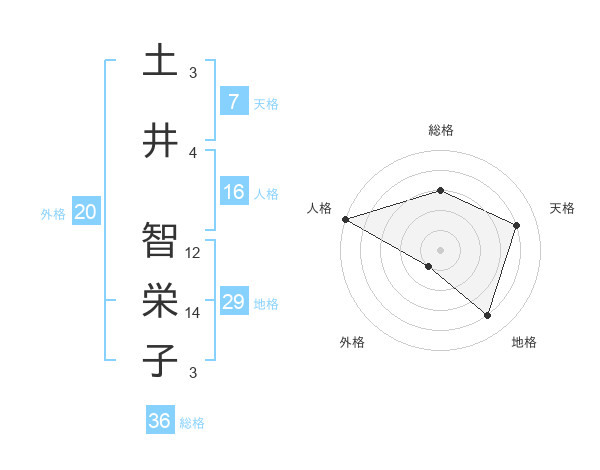 土井 智栄子さんの総格は36画の3点!