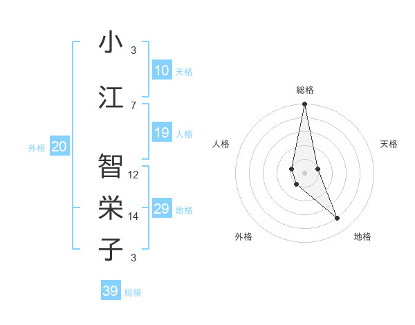 小江 智栄子さんを姓名の画数から五運を鑑定
