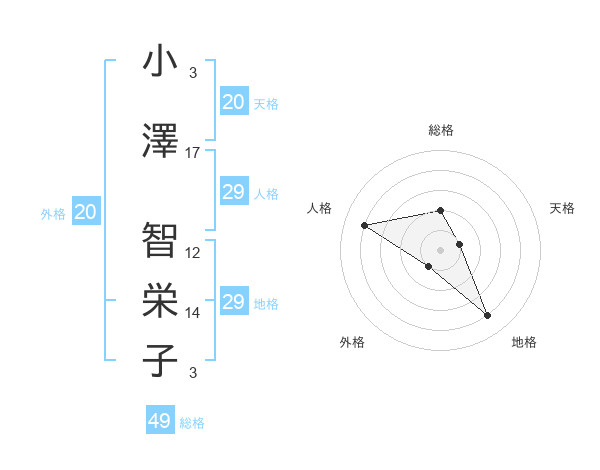 小澤 智栄子さんの天格は20画の1点!