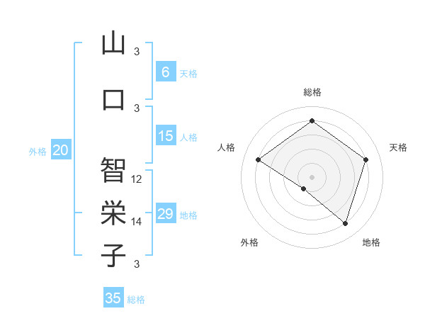 山口 智栄子さんの総格は35画の4点!