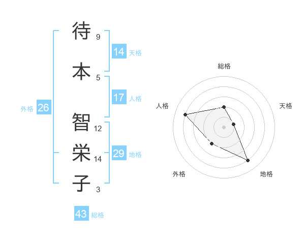 待本 智栄子さんを姓名の画数から五運を鑑定