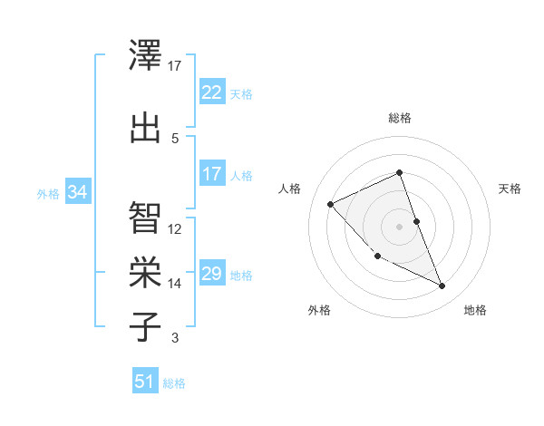 澤出 智栄子さんの総格は51画の3点!