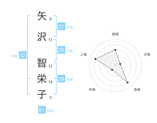 矢沢 智栄子さんの天格は22画の1点!