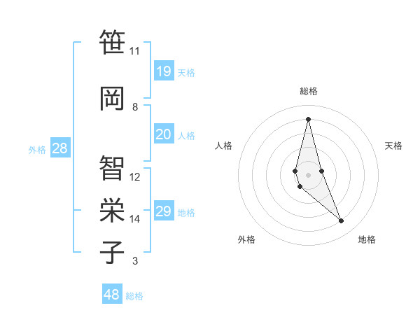 笹岡 智栄子さんの外格は28画の1点!