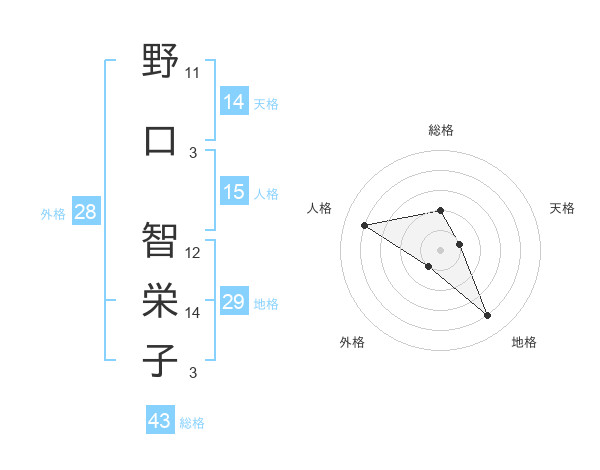 野口 智栄子さんの外格は28画の1点!