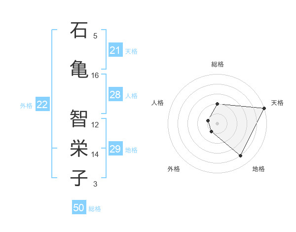 石亀 智栄子さんを姓名の画数から五運を鑑定