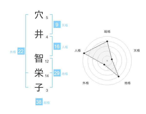 穴井 智栄子さんを姓名の画数から五運を鑑定