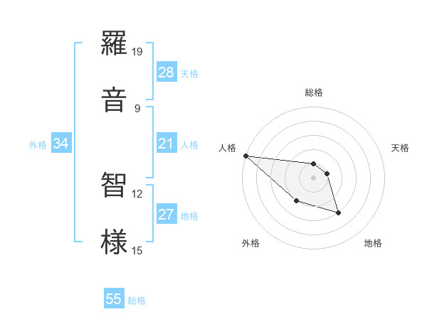 羅音 智様さんの天格は28画の1点!